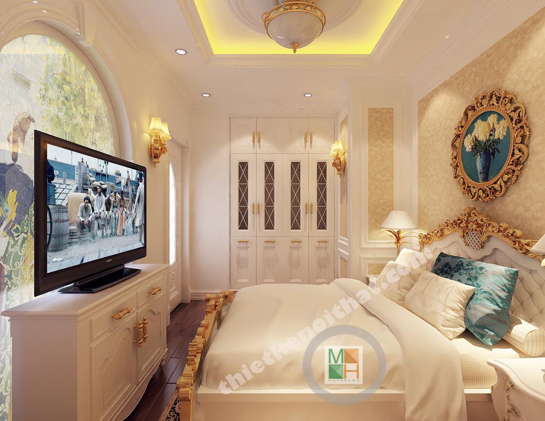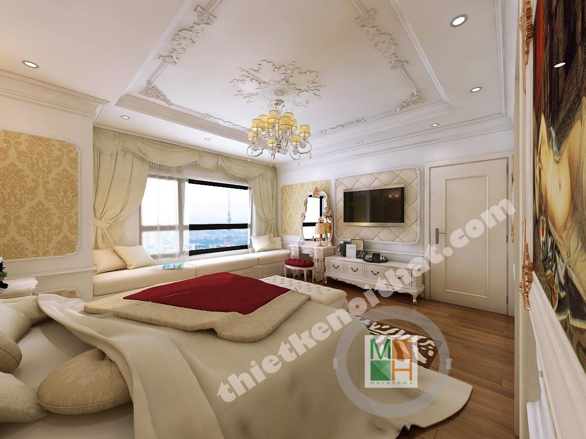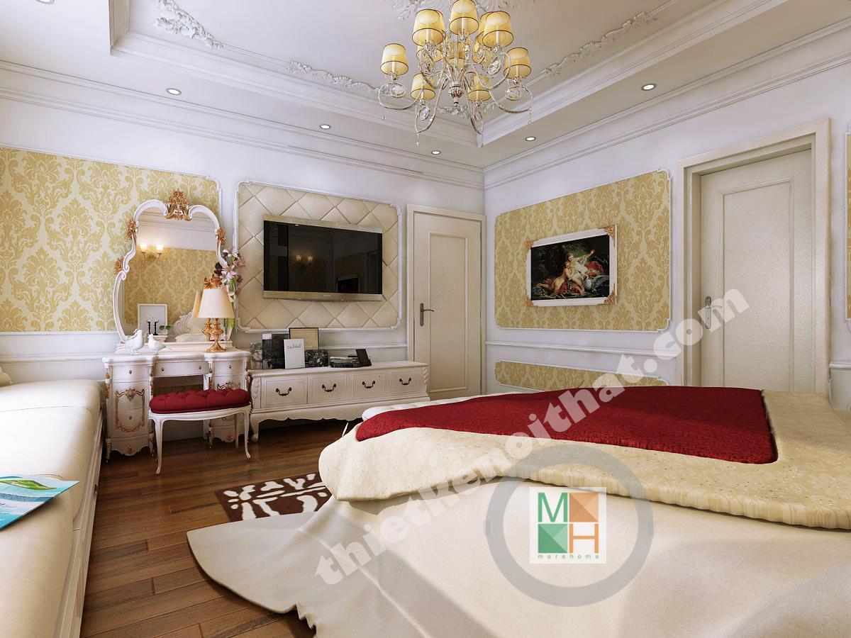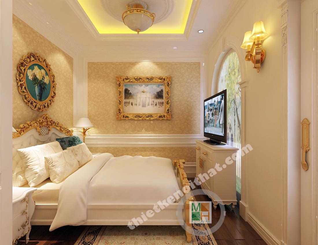 Thiết kế nội thất phòng ngủ tân cổ điển khách sạn cao cấp mang đến một không gian vừa sang trọng vừa tiện nghi, mang lại cảm giác thoải mái, ấm áp cho khách hàng. Thiết kế tân cổ điển với những họa tiết cầu kì, hoa văn tỉ mỉ cùng đèn trang trí đầy kiểu dáng phong phú tạo nên một không gian sang trọng, đẳng cấp lịch lãm.