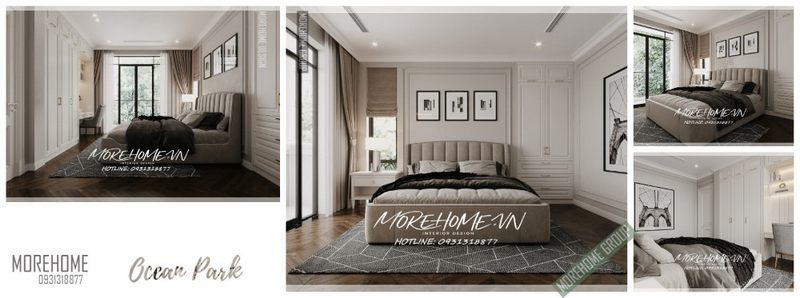 Mẫu thiết kế phòng ngủ với nội thất phong cách hiện đại, tông màu trung tính thích hợp cho các căn hộ, nhà phố, biệt thự.