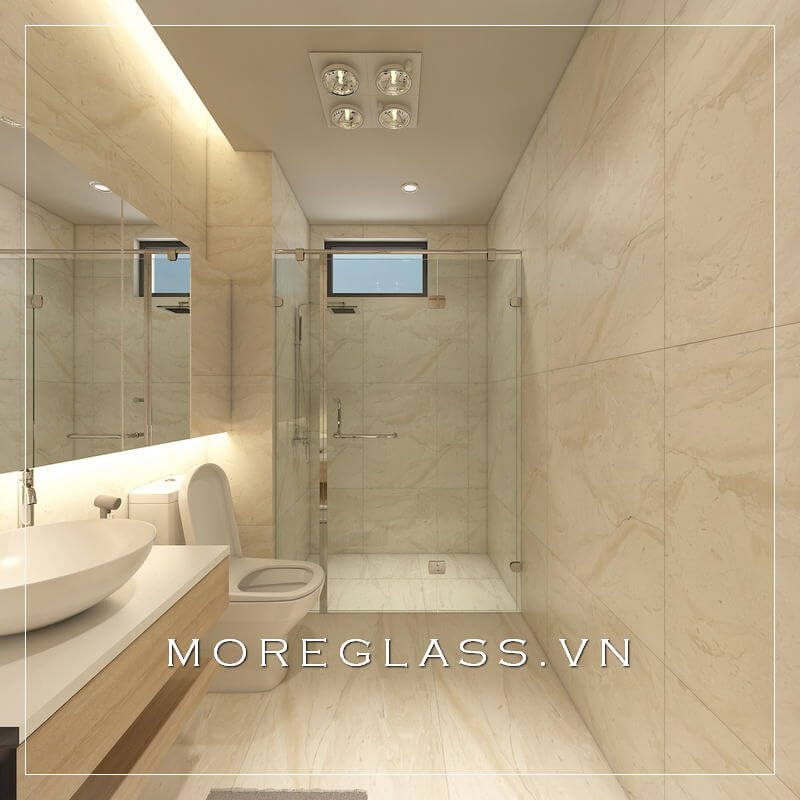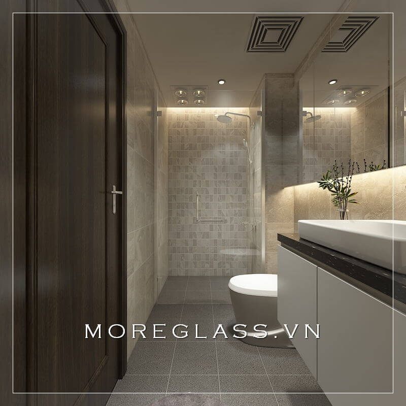 Để thiết kế một phòng tắm nhỏ cho chung cư, nên giảm thiểu nội thất và thiết bị vệ sinh. Chọn tông màu gạch sáng màu để tạo cảm giác rộng rãi hơn cho căn phòng.