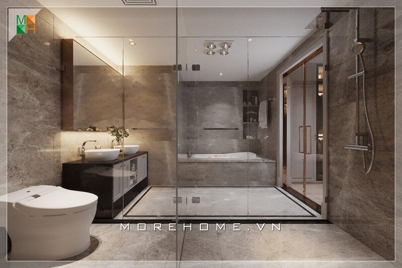 Chưa hết, các thiết bị thông minh như vòi sen massage với nhiều chế độ massage khác nhau hoặc kính hơi để làm ấm giày dép sau khi rửa chân cũng là những lựa chọn đáng quan tâm. Việc sử dụng gương kỹ thuật số tích hợp hiển thị thông tin thời tiết hoặc tin tức mới nhất cũng là một điểm nhấn mang tính cá nhân vào không gian phòng tắm cao cấp của bạn. Những yếu tổ này sẽ mang lại trải nghiệm spa tuyệt vời mỗi khi bạn bước vào ngôi nhà của mình.