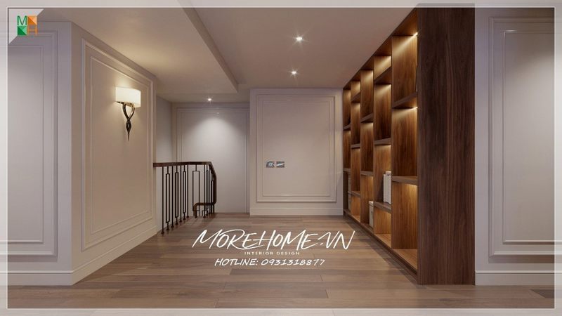 Kệ tủ gỗ công nghiệp được trang bị đèn leb hiện đại, có thể sắp xếp đồ đạc một cách gọn gàng và có nắp ngăn.