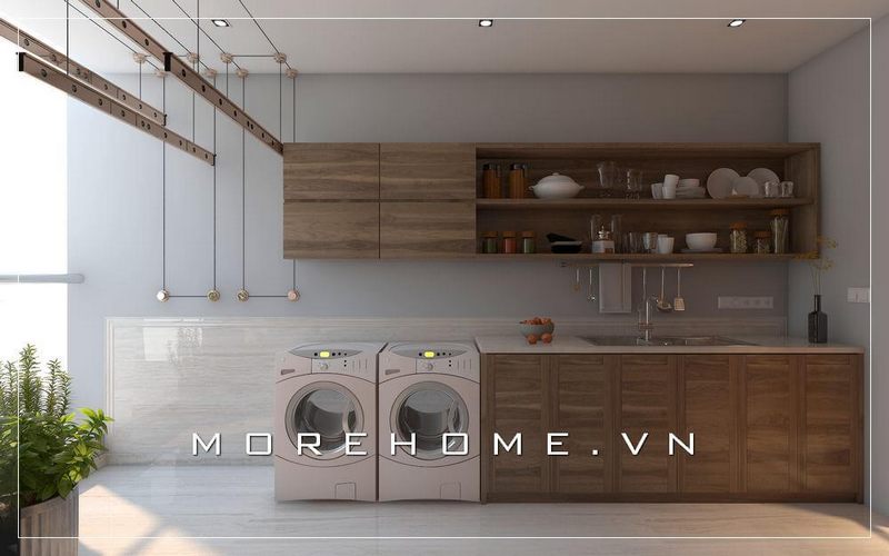 Tạo ra một không gian bếp nhà phố hiện đại với nội thất bếp gỗ công nghiệp đơn giản nhưng vẫn đảm bảo tiện nghi cho người nội trợ.